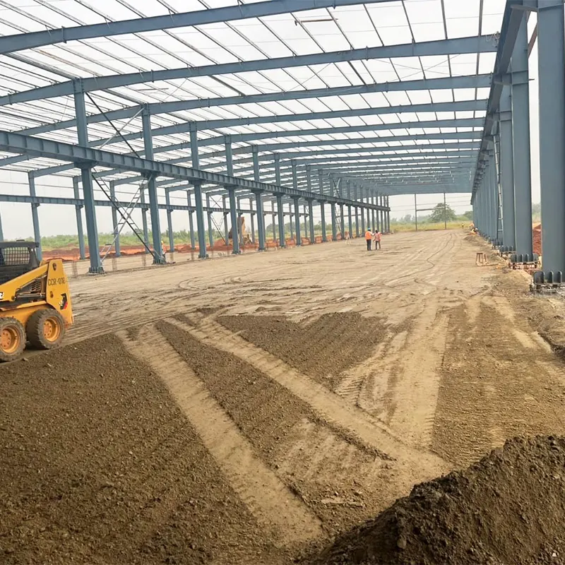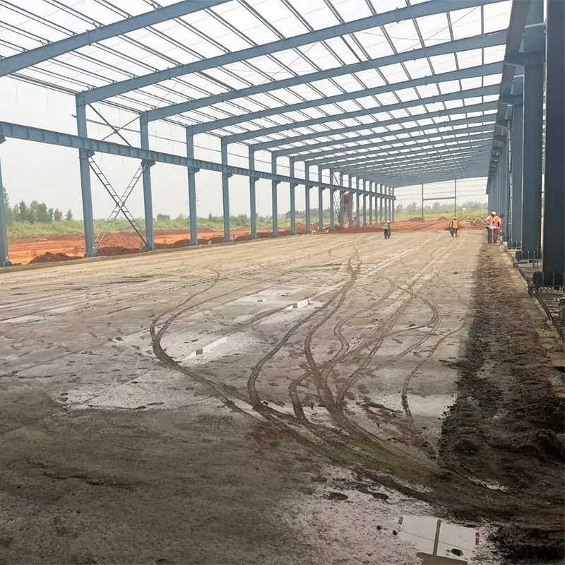 Hochgradig vorgefertigte Portalrahmen-Stahlkonstruktionswerkstatt, konstruiert mit hochwertigen Stahlprofilen für stabile Tragfähigkeit, Erdbeben- und Windbeständigkeit. Die werkseitige Vorfertigung ermöglicht hohe Präzision, schnelle Montage vor Ort und eine anpassbare Raumaufteilung und passt sich mit flexiblen Säulenabständen und freier Höhengestaltung an unterschiedliche Produktions- und Lageranforderungen an.