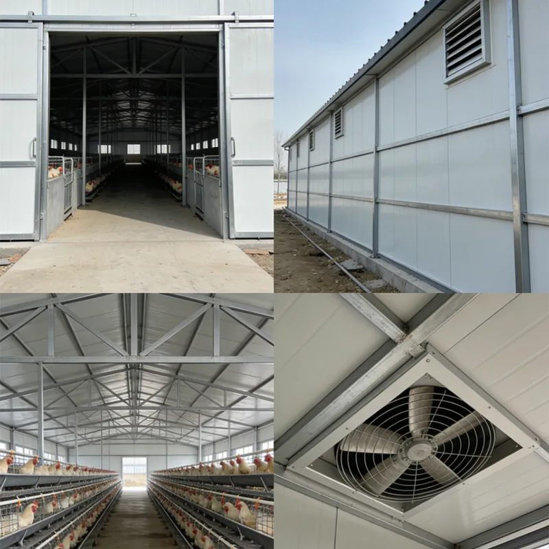 Unser vorgefertigter Hühnerstall mit Stahlkonstruktion ist eine hocheffiziente, hygieneorientierte Zuchtlösung für die moderne intensive Geflügelhaltung. Durch die Kombination von vorgefertigter Stahlkonstruktion mit geflügelspezifischem Design zeichnet es sich durch schnelle Montage, hervorragende strukturelle Stabilität und optimale Umweltkontrolle aus und schafft so einen sicheren, komfortablen Lebensraum, der die Gesundheit und Produktionseffizienz von Hühnern fördert. Der leichte und dennoch robuste Stahlrahmen unterstützt eine flexible Raumaufteilung, während die Korrosionsschutz-, antibakteriellen und leicht zu reinigenden Eigenschaften die strengen Anforderungen zur Vorbeugung von Geflügelseuchen erfüllen. Es eignet sich für Broiler, Legehennen, Zuchtgeflügel und anderes Geflügel und ist die ideale Wahl für kleine, mittlere und große Betriebe, die zuverlässige, wartungsarme Zuchtanlagen suchen.