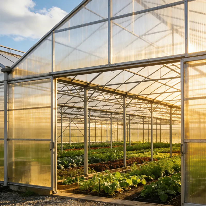 3.Maßgeschneiderte Konfigurationen: Passen Sie Abdeckmaterialien (PC-Platte/Folie/Glas), Rahmenhöhe/-spannweite, Lüftungssysteme, Heiz-/Kühlgeräte, Bewässerungssysteme, Beschattungsnetze und Zugangstüren basierend auf Ihren tatsächlichen Pflanzszenarien an.
